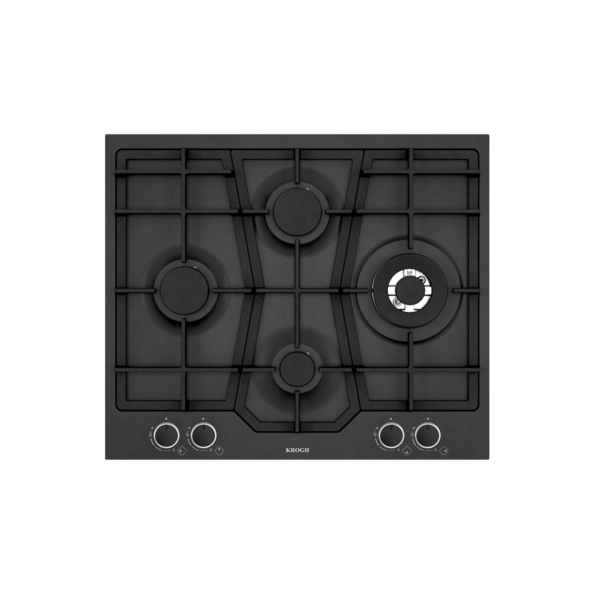 Built-in gas hob, 4 burners (SABAF), black matt enameled surface, automatic ignition, and safety device.